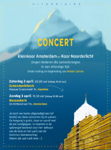 Benefietconcert door Kleinkoor Amsterdam en koor Noorderlicht uit Haarlem