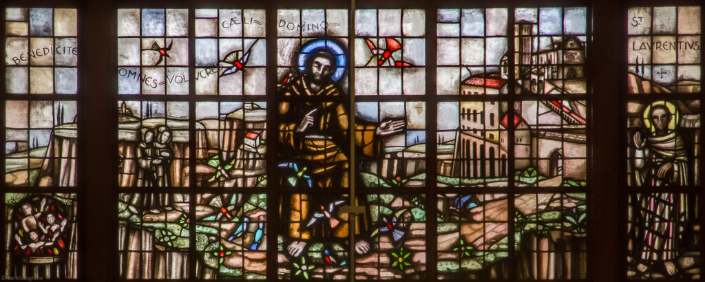 Han Bijvoet: gebrandschilderde ramen in de Antoniuskapel en in de Mariakapel/Doopkapel Mies van Oppenraay: wandschilderingen in beide kapellen en paneeltjes op het hoogaltaar (H. Martelaren van Gorcum) Karel Trautwein: gebrandschilderd raam boven de hoofdingang (Franciscus van Assisi)